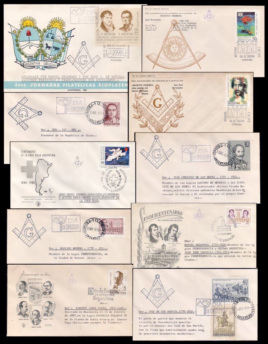 ARGENTINA/ENVELOPES – LOT OF 10 ENVELOPES – MASONRY – ISSUE DATE – 1960s AND 1970s