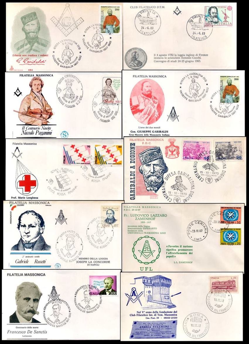ITALY/ENVELOPES – LOT OF 10 ENVELOPES – FREEMASONRY – FIRST DAY ISSUE – 1960s, 70s AND 80s