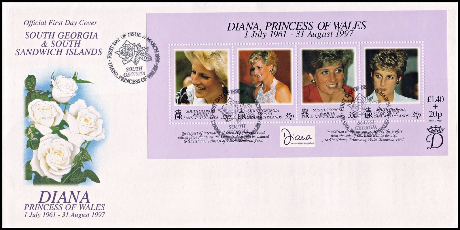 SOUTH GEORGIAS/COVER, 1998 – HOMAGE TO WALES PRINCESS DIANA – Yv. BF N? 7 – FIRST DAY COVER (31 MAR 1998)