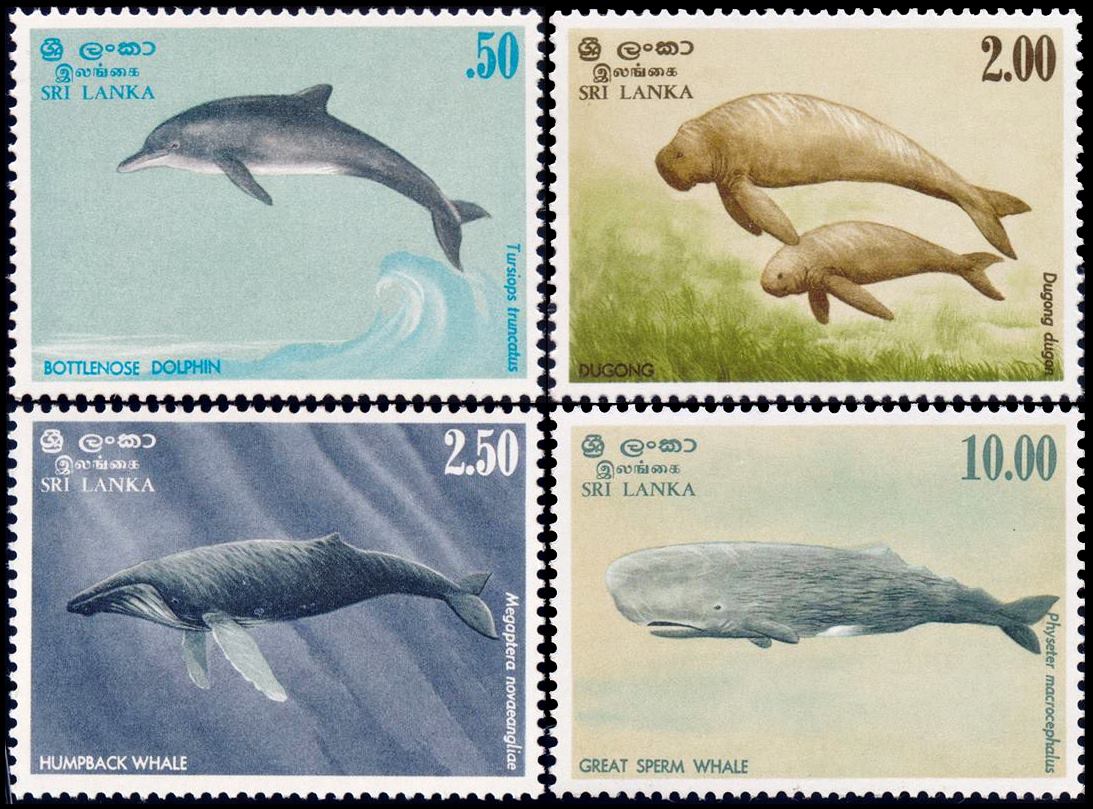 SRI LANKA/STAMPS, 1983 – WILDLIFE – WHALES AND DOLPHINS – DUGONG – YV 623/26 – 4 VALUES – MNH