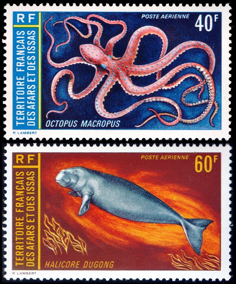 AFARS E ISSAS/SELLOS – FAUNA MARINA – PULPO – DUGONGO – YV A 85/86 – 2 VALORES – MINT