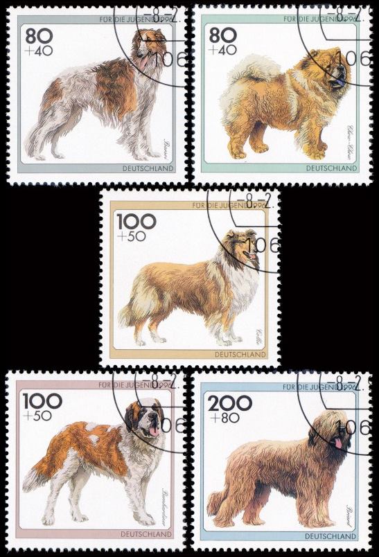 ALEMANIA/SELLOS, 1996 – PERROS – YV 1668/72 – 5 VALORES – USADO