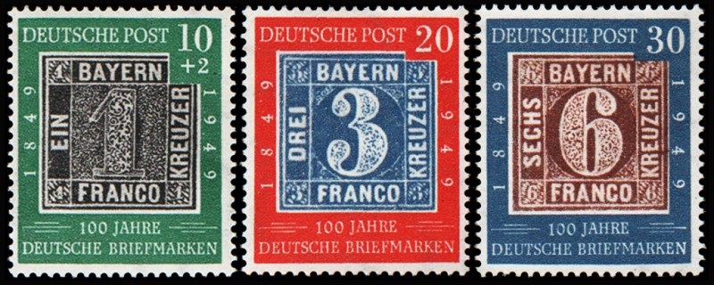 ALEMANIA/SELLOS, 1949 – ANIVERSARIO DEL SELLO ALEMAN – YV 2A/2C – 3 VALORES – NUEVO – BISAGRA