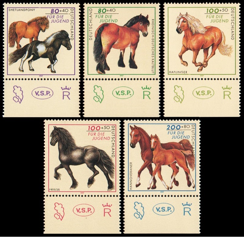 ALEMANIA/SELLOS, 1997 – CABALLOS – YV 1752/56 – 5 VALORES – NUEVO