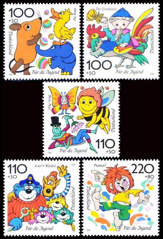 ALEMANIA/SELLOS, 1998 – DIBUJOS ANIMADOS – YV 1822/26 – 5 VALORES – NUEVO