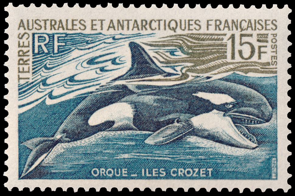 ANTARTIDA FRANCESA (T.A.A.F.) SELLOS, 1966 – CETACEOS – ORCA – ISLAS CROZET – YV 30 – 1 VALOR – NUEVO – MINT