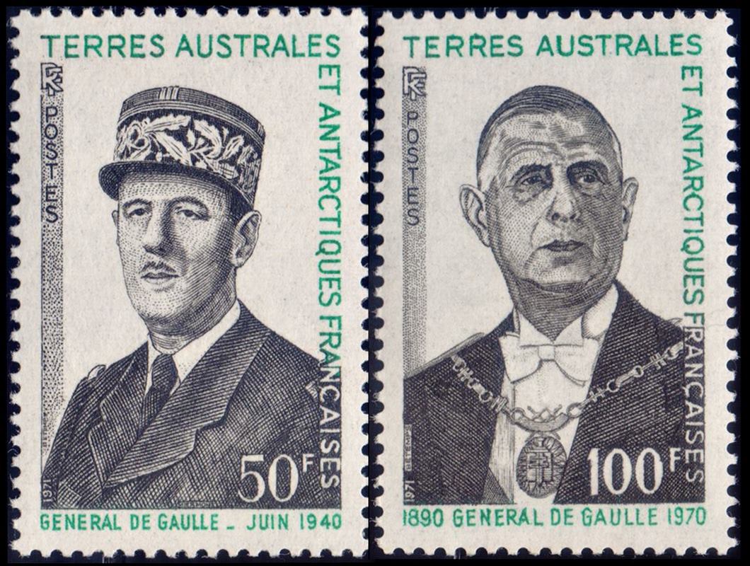 ANTARTIDA FRANCESA (T.A.A.F.) SELLOS, 1972 – GENERAL CHARLES DE GAULLE (1890-1970) – YV 46/47 – 2 VALORES – MINT