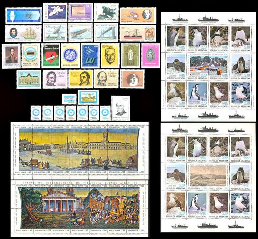 ARGENTINA – 1980 AÑO COMPLETO – SELLOS NUEVOS – 63 VALORES –