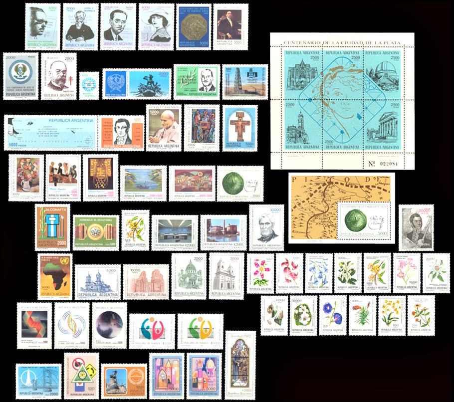 ARGENTINA – 1982 AÑO COMPLETO – 44 SELLOS CONMEMORATIVOS, 15 ORDINARIOS Y 2 BLOQUES – NUEVO