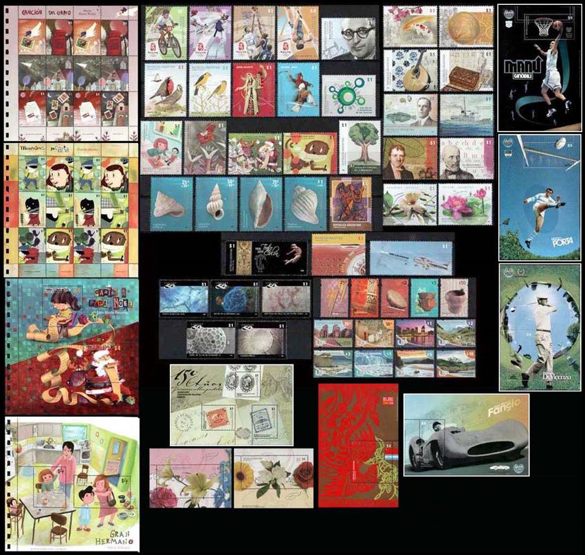 ARGENTINA – 2008 AÑO COMPLETO – 39 CONMEMORATIVOS + 5 ORDINARIOS + 8 SELLOS DE UP + 12 BLOQUES – MINT