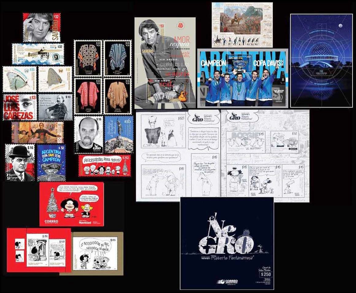 ARGENTINA – 2017 AÑO COMPLETO – 16 SELLOS CONMEMORATIVOS – 11 ORDINARIOS (2 CARNETS) + 4 BLOQUES – MINT