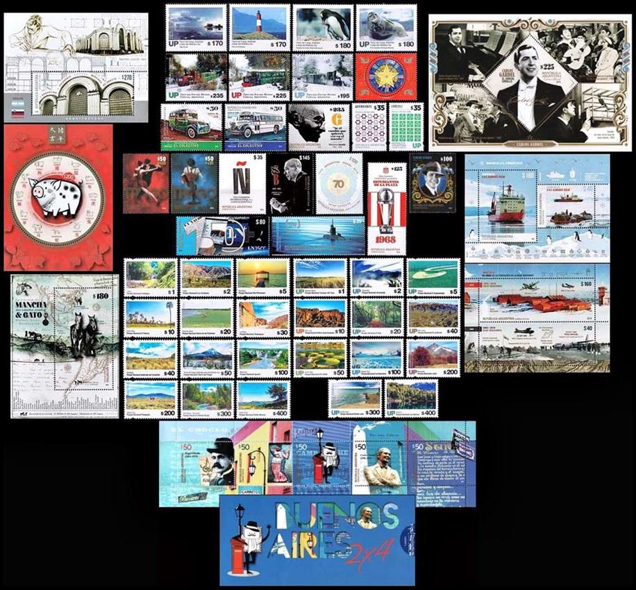 ARGENTINA – 2019 AÑO COMPLETO – 13 CONMEMORATIVOS + 15 ORDINARIOS + 6 BLOQUES + 17 SELLOS U.P. + 1 CARNET ORDINARIO ( 5 SELLOS) – MINT