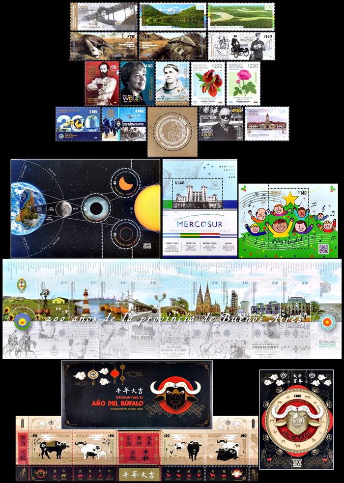 ARGENTINA – 2021 AÑO COMPLETO – 16 SELLOS CONMEMORATIVOS + 5 BLOQUES +1 CARNET ORDINARIO (5 SELLOS) – MINT