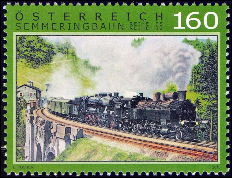 AUSTRIA/SELLOS, 2015 – LOCOMOTORA – LINEA TRENES DE SEMMERING – PUENTE – YV 3061 – 1 VALOR – MINT