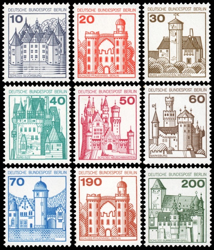 BERLIN/SELLOS, 1977 – CASTILLOS – SERIE ORDINARIA – YV 496/502 – 9 VALORES – NUEVO