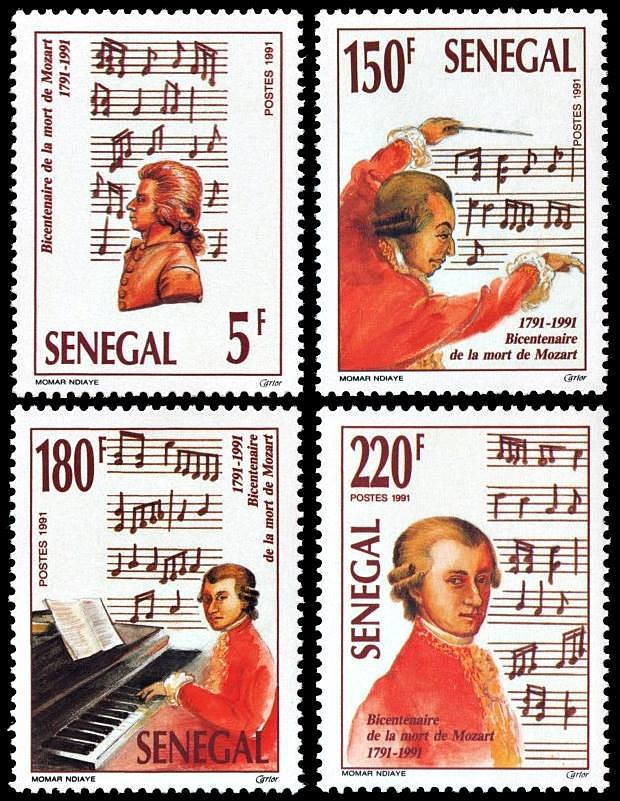 SENEGAL/SELLOS, 1991- MUSICA – MUSICA CLASICA – MOZART – YV 943/46 – 4 VALORES – NUEVO