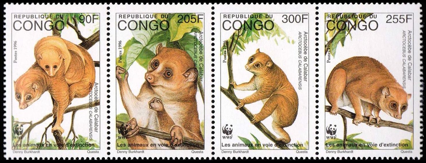 CONGO/SELLOS, 1998 – W.W.F. – FAUNA – ANGUANTIVO DE CALABAR – YV 1051/54 – 4 VALORES – NUEVO
