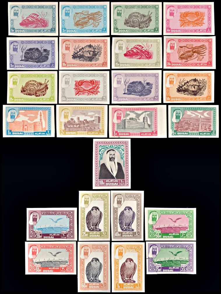 DUBAI (ARABIA DEL SUDESTE) SELLOS, 1963 – SERIE ORDINARIA – SCHEIK – RASHID BIN SAID – YV 1/17 + A 1/8 – 25 VALORES – SIN DENTAR – MINT