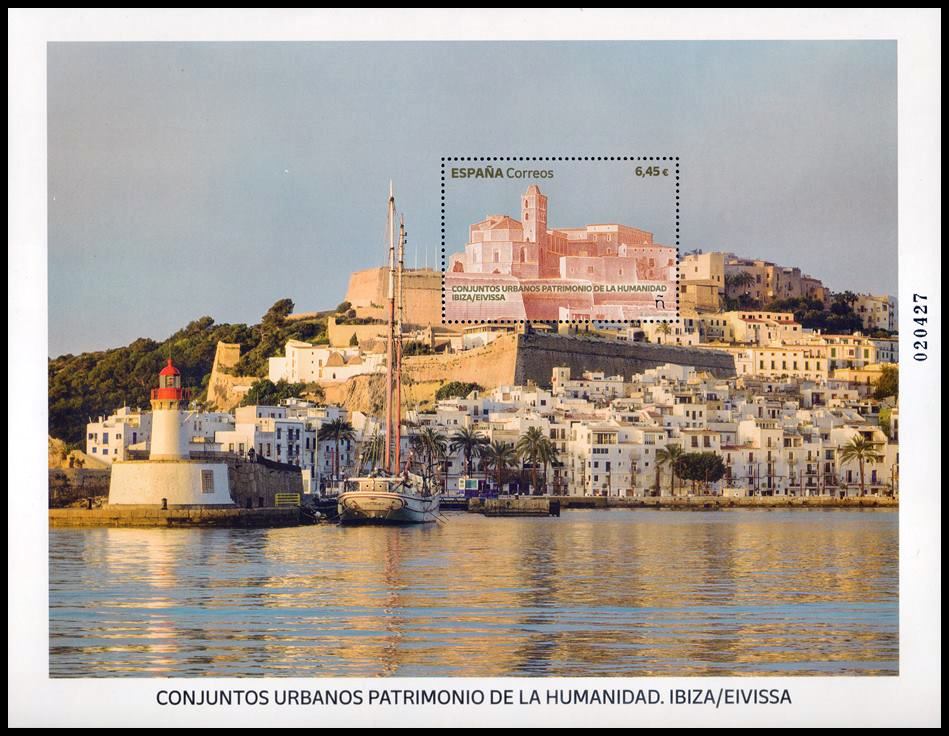 ESPAÑA/SELLOS, 2023 – CONJUNTOS URBANOS – PATRIMONIO DE LA HUMANIDAD – IBIZA (EIVISSA) – YV F 5436 – BLOQUE – MINT