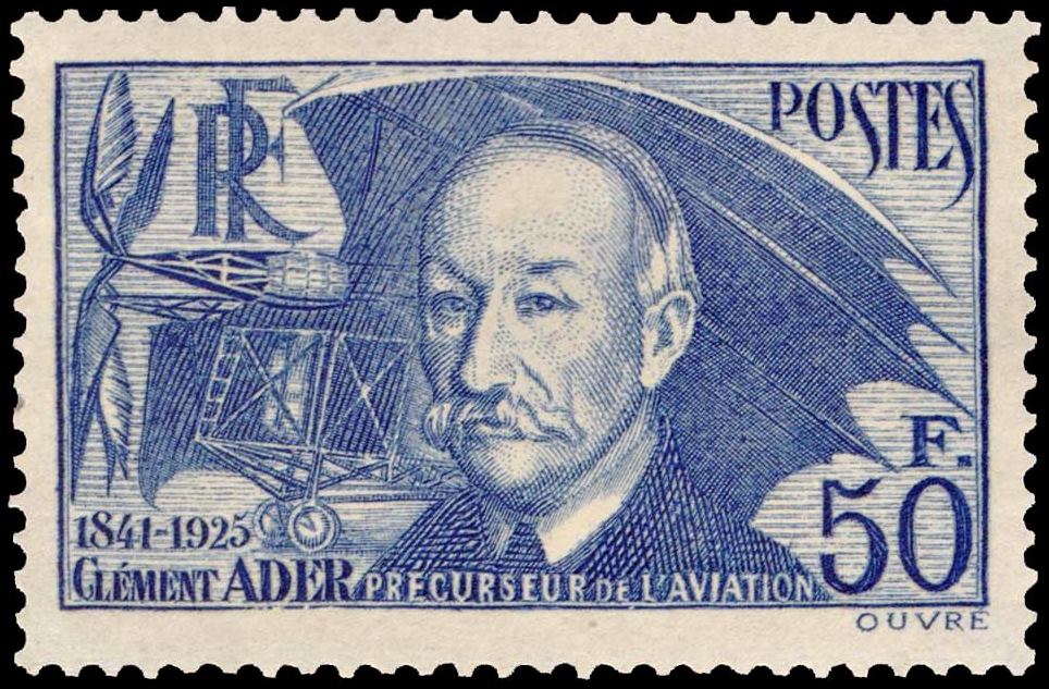 FRANCIA/SELLOS, 1938 – CLEMENT ADER – PIONERO DE LA AVIACION – YV 398 – 1 VALOR – NUEVO CON BISAGRA