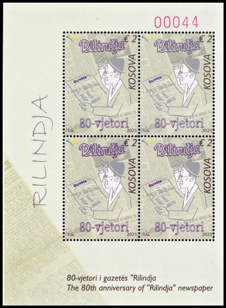 KOSOVO/SELLOS, 2025 – 80 ANIVERSARIO DEL PERIÓDICO RILINDJA -YV 504 – HOJITA – MINT
