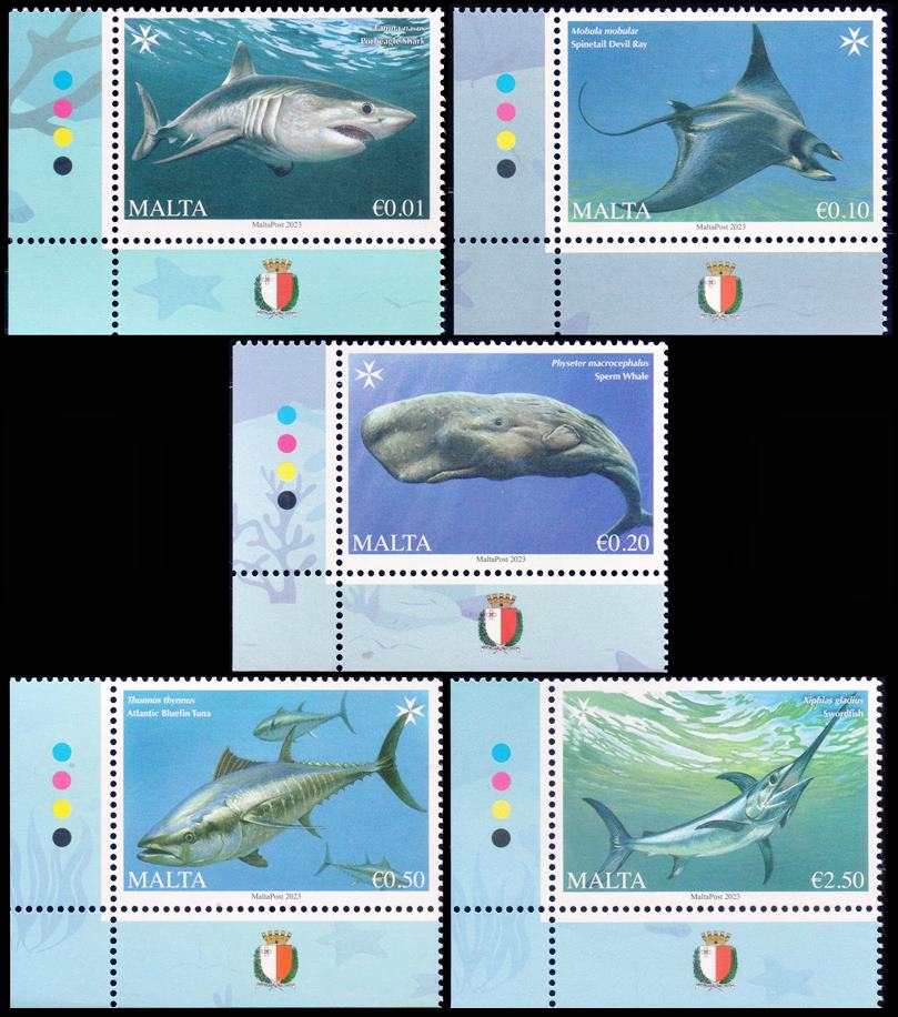 MALTA/SELLOS, 2023 – PECES – CETACEOS – YV 2121/25 – 5 VALORES – MINT