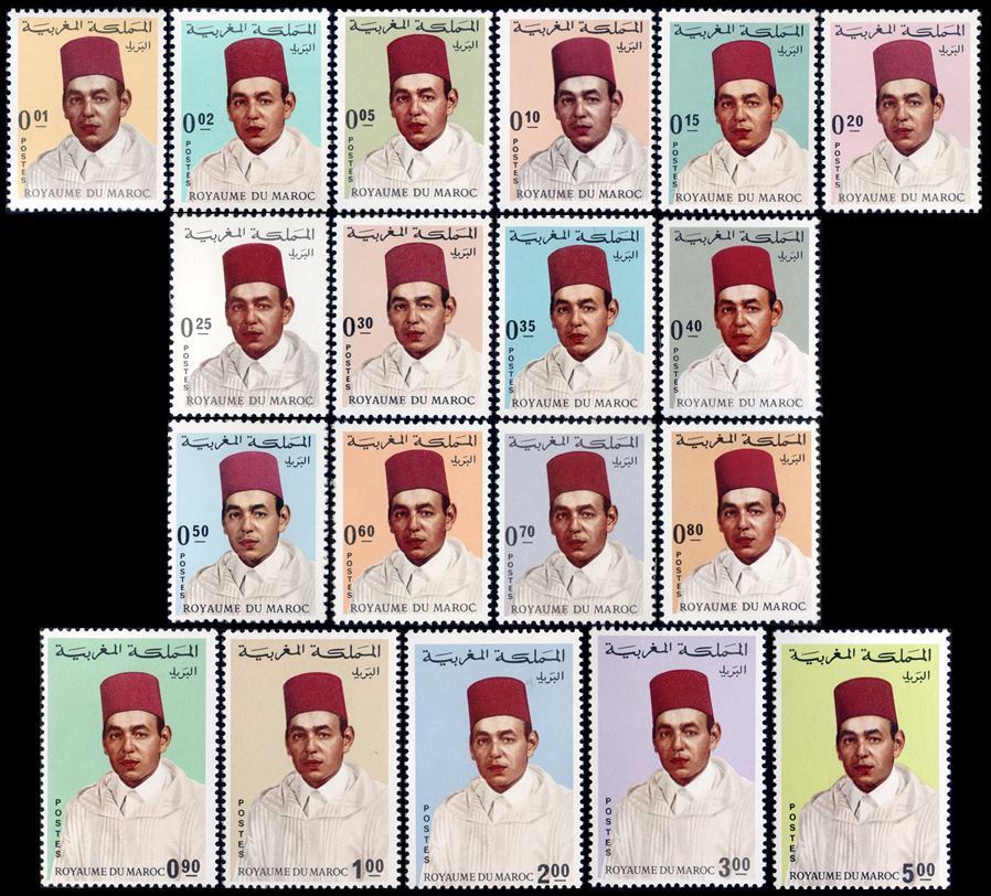 MARRUECOS/SELLOS, 1968 – SELLOS ORDINARIOS – REY HASSAN II – YV 534/552 – 19 VALORES – MINT