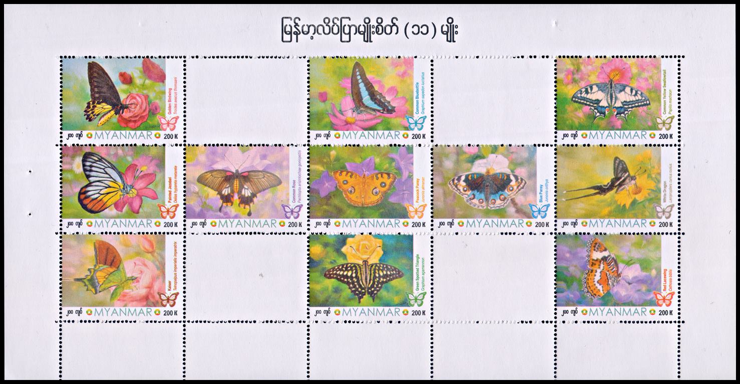 MYANMAR/SELLOS, 2025 – FAUNA – MARIPOSAS – HOJITA – MINT