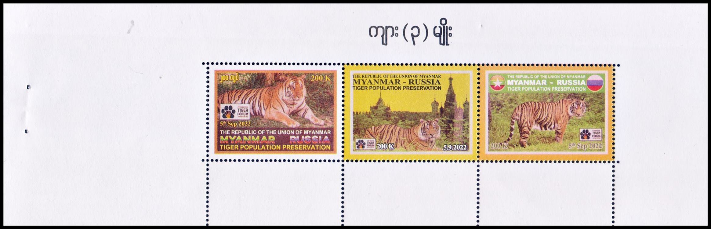 MYANMAR/SELLOS, 2024 – FELINOS – TIGRE – 3 VALORES – NUEVO – MINT