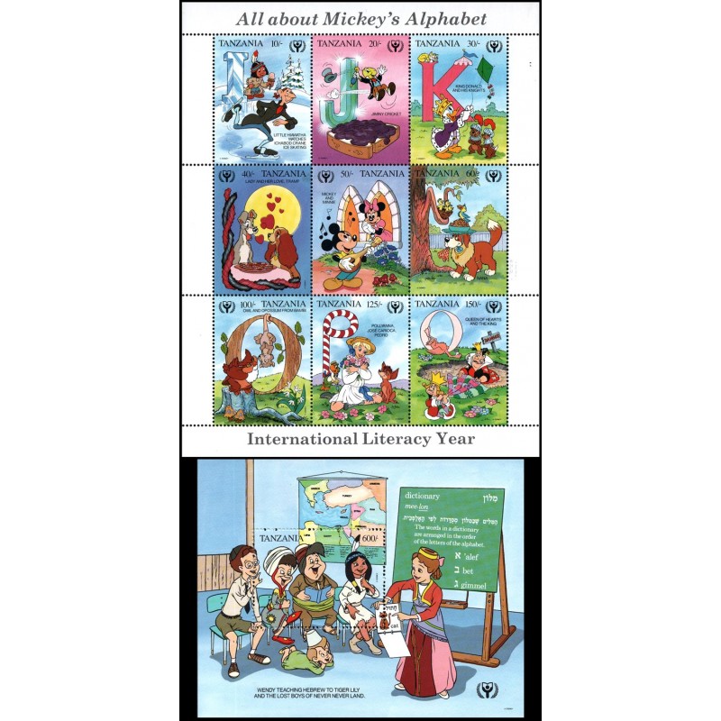 TANZANIA/SELLOS, 1990 – DISNEY – YV 622/30 + BF 117 – HOJITA + BLOQUE – NUEVO