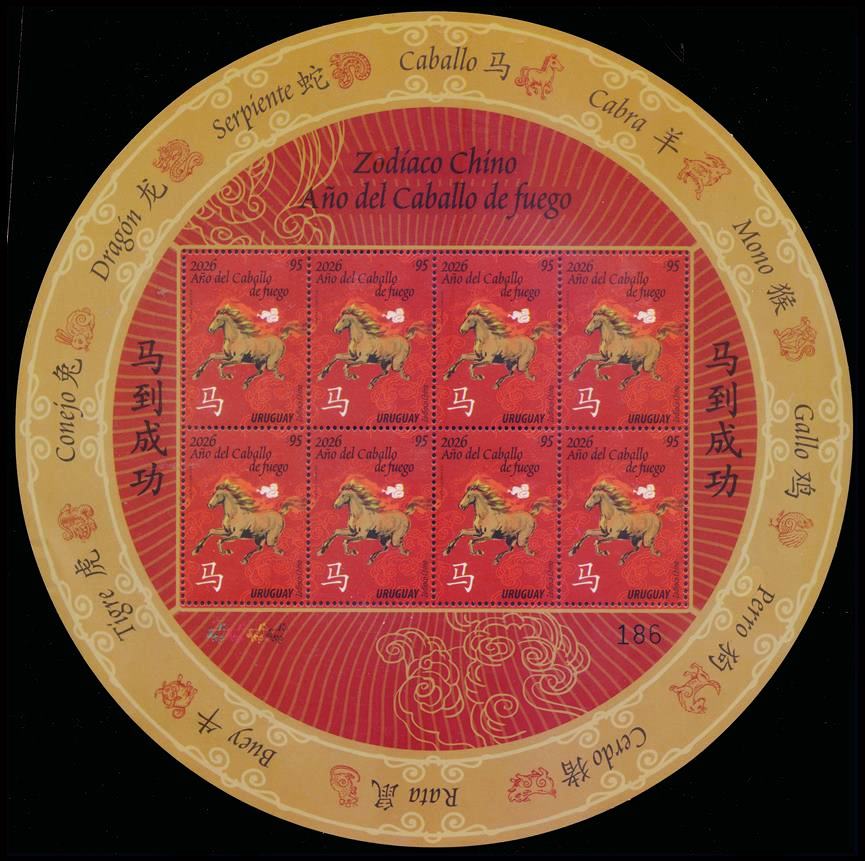 URUGUAY/SELLOS, 2026 – AÑO LUNAR CHINO DEL CABALLO – BLOQUE – MINT