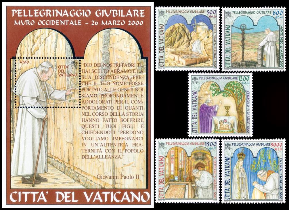 VATICANO/SELLOS, 2001 – PEREGINACIONES DEL SANTO PADRE JUAN PABLO II – YV 1231/35 + BF 23 – 5 VALORES + BLOQUE – MINT