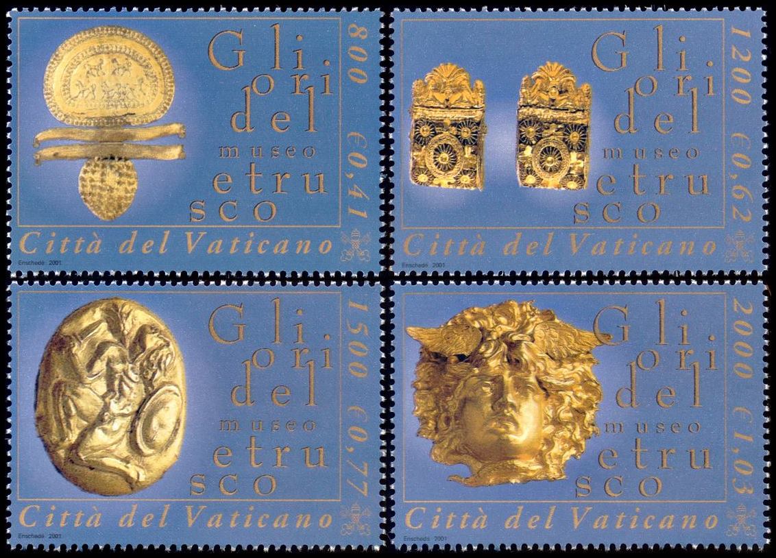 VATICANO/SELLOS, 2001 – TESOROS DEL MUSEO ETRUSCO – YV 1242/45 – 4 VALORES – MINT