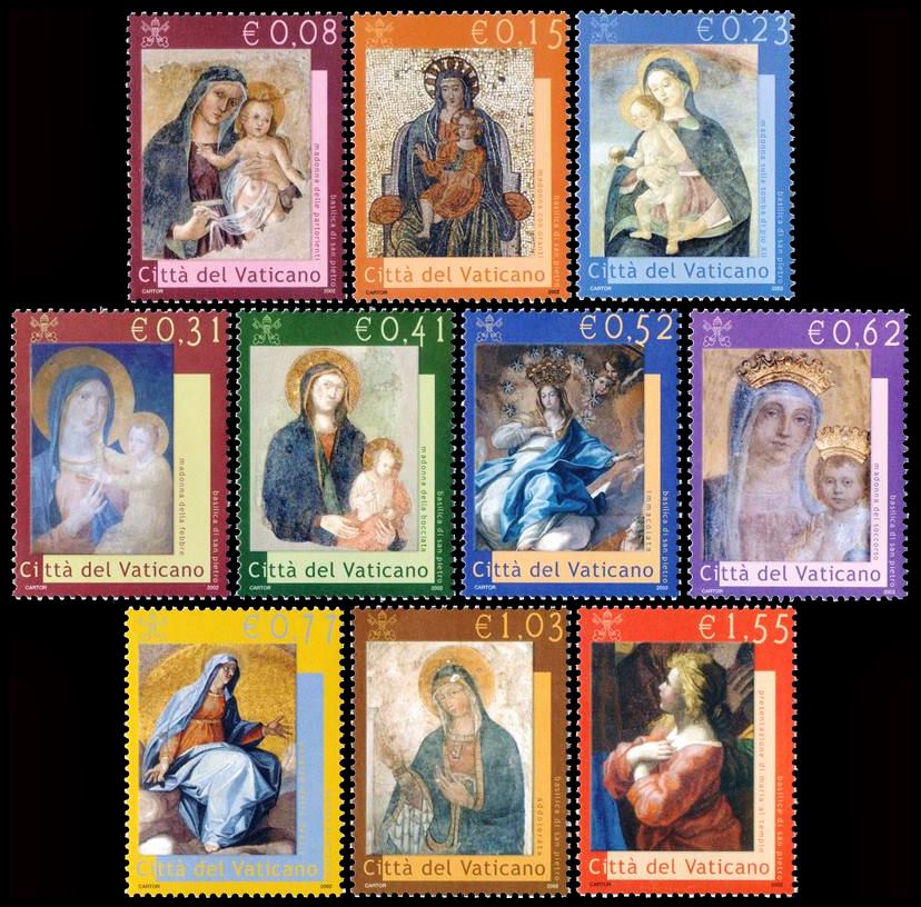 VATICANO/SELLOS, 2002 – MADONAS DE LA BASILICA DE SAN PEDRO – YV 1250/59 – 10 VALORES – MINT