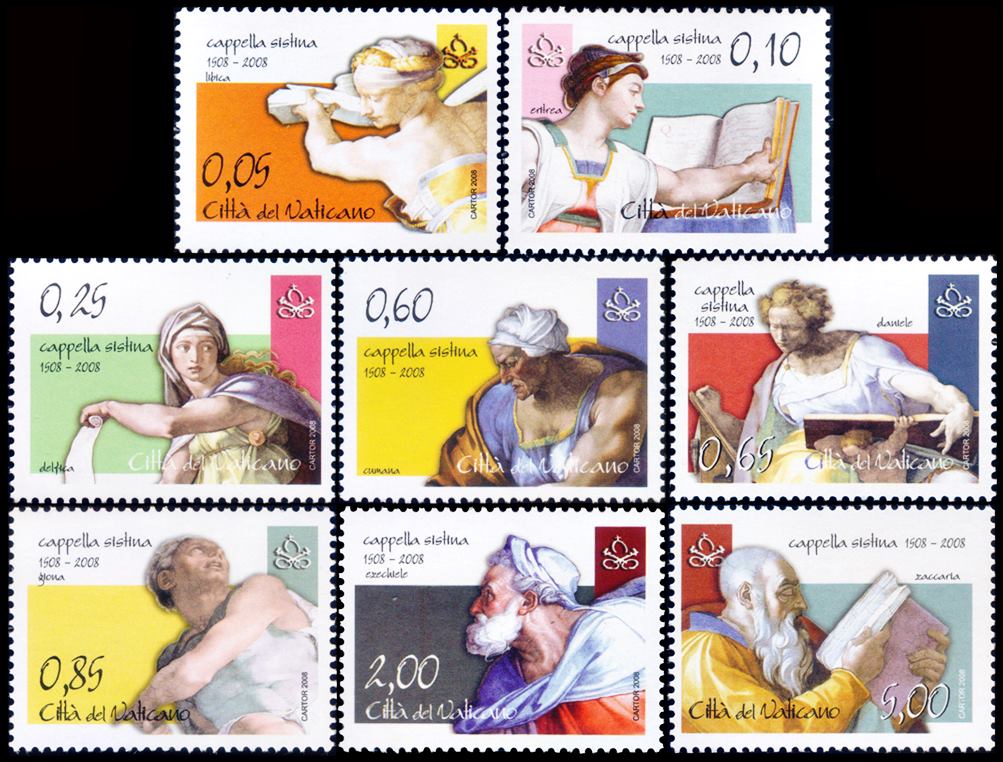 VATICANO/SELLOS, 2008 – FRESCOS DE LA CAPILLA SIXTINA – YV 1456/63 – 8 VALORES – MINT