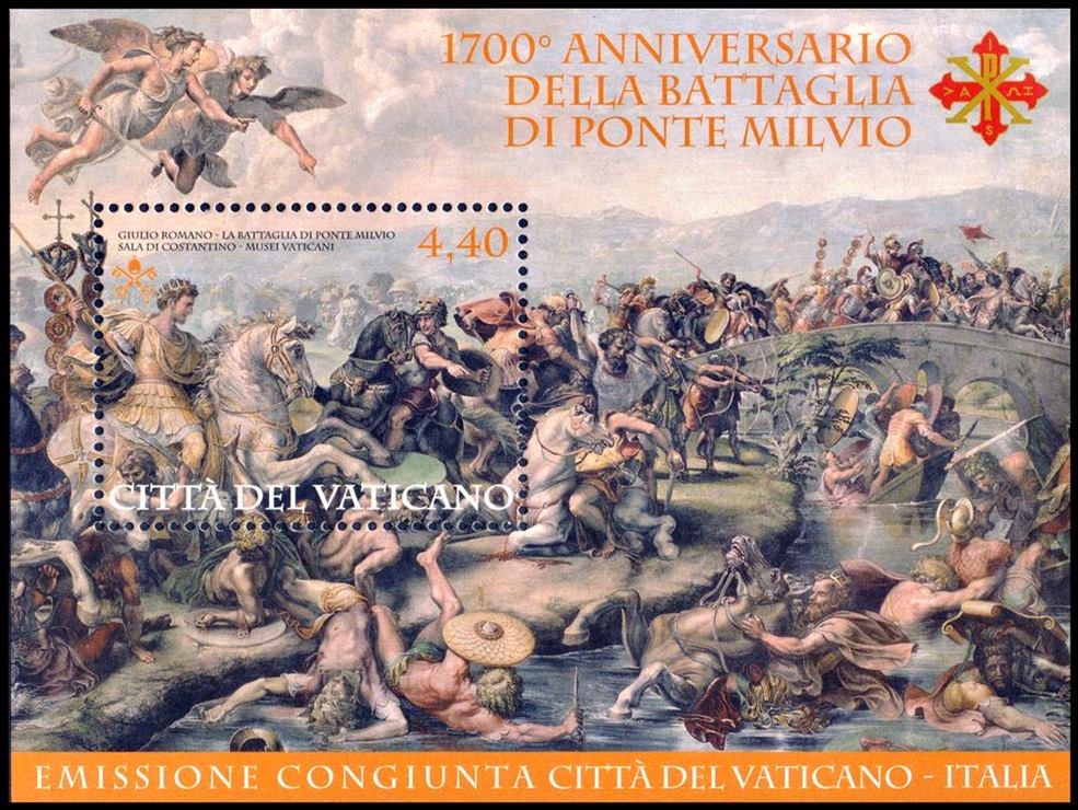 VATICANO/SELLOS, 2012 – 700 ANIVERSARIO DE LA BATALLA DEL PUENTE MILVIO – YV BF 40 – BLOQUE – NUEVO – MINT