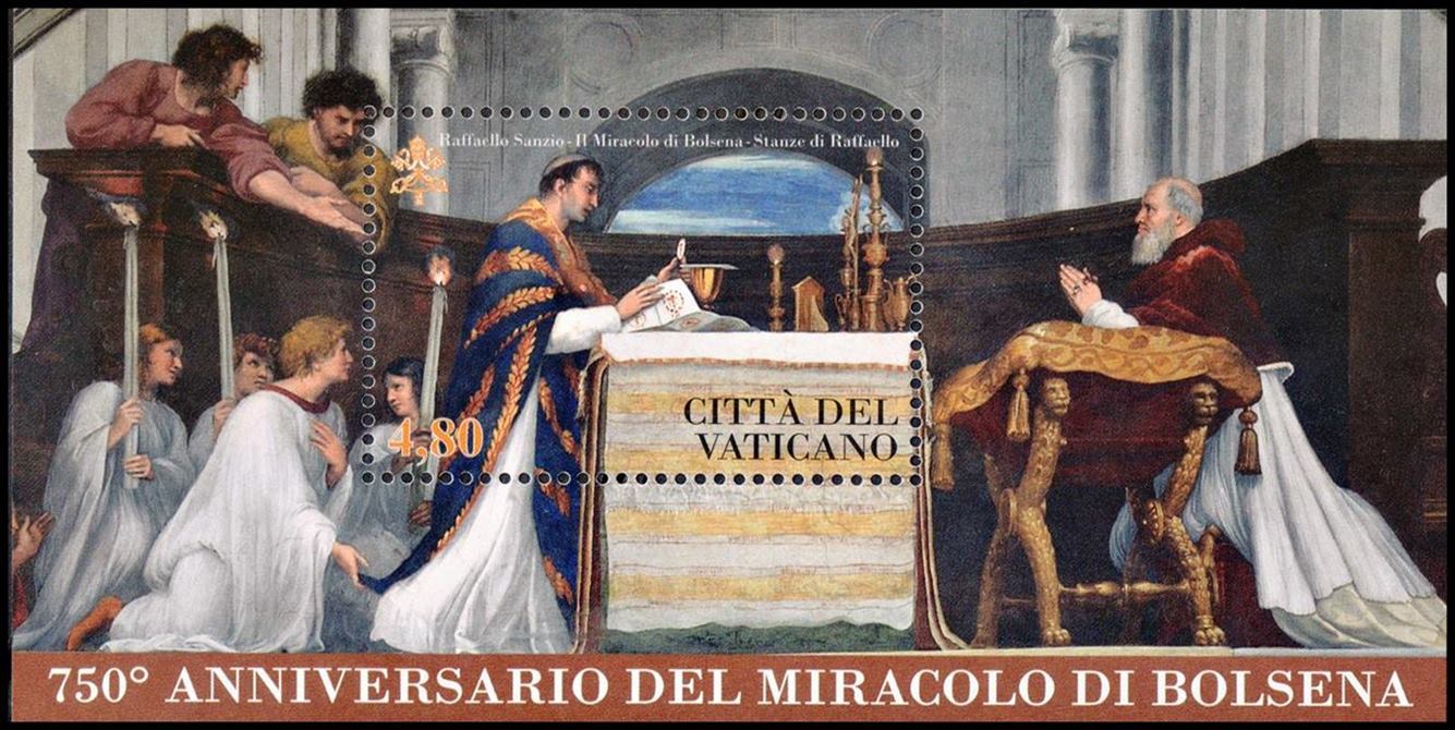 VATICANO/SELLOS, 2013 – PINTURA – RAFAEL – EL MILAGRO DE BOLSENA – YV BF 42 – BLOQUE – NUEVO – MINT